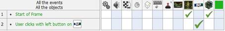 Создаём условие. Если пользователь кликает по первому объекту, причём делает это левой кнопкой мыши и одинарным кликом, значит, значение переменной мы установим в 1. И перейдём в следующий фрейм.