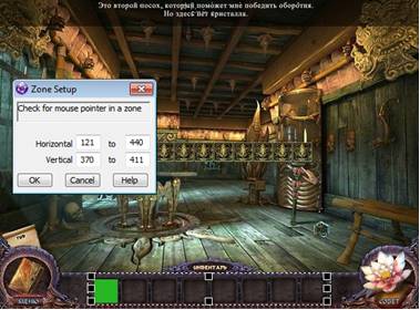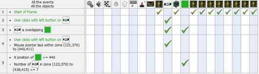New condition – The mouse pointer and keyboard – The mouse – User clicks on an object – OK – Friends. Далее кликаем на условие – Insert – The mouse pointer and keyboard – The mouse – Check for mouse pointer in a zone и выделяем нижнюю часть нашей картинки (ячейки).