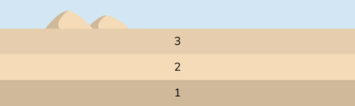 Слои горных пород с течением времени постепенно накапливаются друг над другом. Отсюда вытекает один из основных принципов стратиграфии – принцип Стенона (закон суперпозиции), который гласит, что при ненарушенном залегании слоёв нижний слой древнее, чем слой, который на нём залегает (рис. 11).