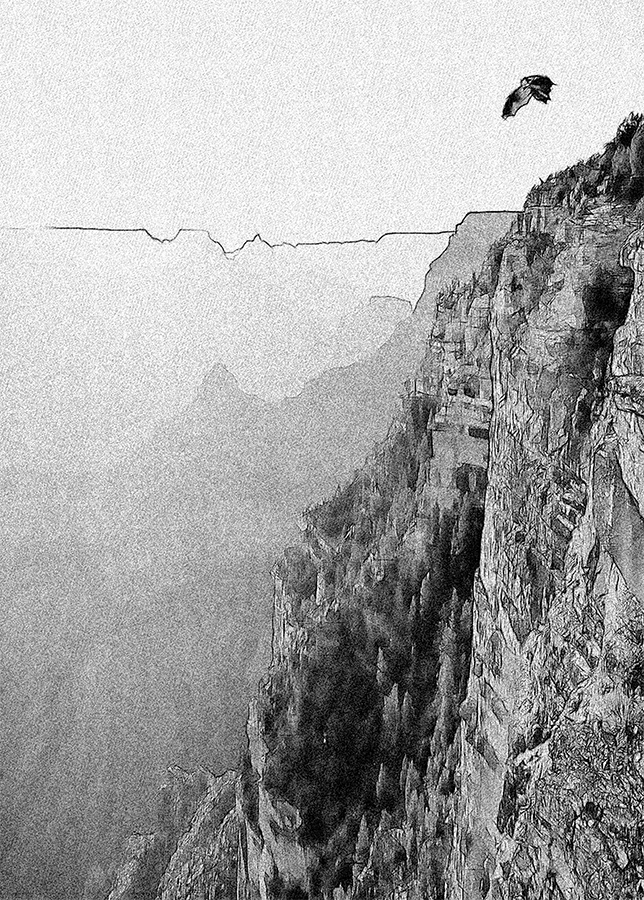 Задрав голову и приоткрыв от задумчивости рот, Штиис смотрел, как прямо над ним далеко в лазурно-синем небе висел рельефный четкий гранитный обрез скалы.