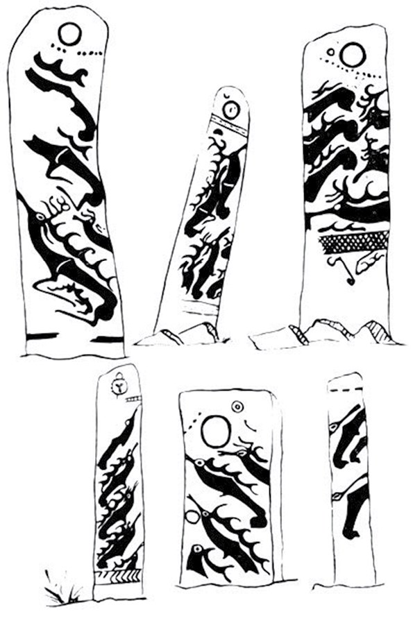 Развернутая композиция с рельефным изображением человека на оленных камнях. Вблизи города Мурэна Хубсугульского аймака (Монголия)