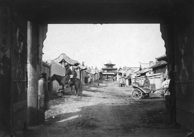Ил. 2. Уличная сцена в Майнмачене (1885 или 1886), китайской торговой слободе, расположенной непосредственно на другой стороне границы от Кяхты. Более полутора сотен лет эта торговая система доминировала на границе в двустороннем обмене чаем, мехами и другими товарами (Библиотека Конгресса; LOT 13251)
