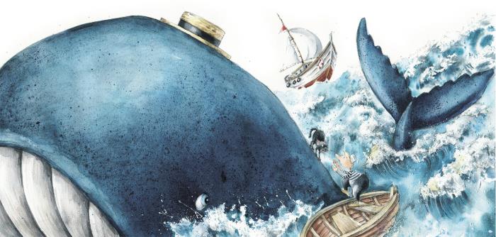 Однажды я увидела в море корабль. Бабушка учила меня не подплывать близко к гудящим гигантам, чтобы не порезаться о винты. Но этот корабль был особенным! С красивыми белыми парусами, похожими на ваши крылья, милая Дай-Дай, он бесшумно летел по воде! Я подплыла поближе, чтобы полюбоваться крылатым красавцем, и вдруг увидела, как какие-то серые зверьки с узкими злыми мордами[5] и длинными розовыми хвостами подтащили к борту мешок и сбросили его в море. Мешок барахтался и издавал пищащие звуки. Я поднырнула под него и забросила к себе на спину. Хорошо, что эти серые не догадались его завязать! Кто-то выполз из мешка, и тут же будто множество острых ракушек вонзилось мне в спину! От неожиданности я вскрикнула, и на палубу корабля выбежали люди. «Ух ты, кит! Настоящий кит!» – кричали они. А один, в шапке-айсберге на голове, выхватил у другого бинокль, посмотрел в него и воскликнул: «Да у кита на спине Мурзик! Мурзик за бортом! Спустить шлюпку на воду!»