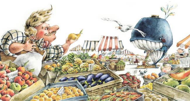 Самые лучшие стихи рождаются от любви. Вениамин Огурцов-Пупыркин очень любил свою работу! Он плёл косички из лука, накручивал брокколи на бигуди, маленькой щёточкой причёсывал персики, фланелевой тряпочкой нежно натирал бока яблокам и грушам, дружески похлопывал по округлым плечам тугие арбузы. Овощи и фрукты отвечали поэту взаимностью – они были такими сочными, такими ароматными, такими вкусными, что от покупателей не было отбоя.
