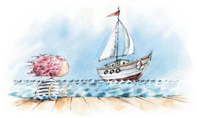Так вот, Ассоль Вафелькина жутко боялась моря! Но так было не всегда. Когда девочка была совсем маленькой, ростом примерно с табуреточку, она с родителями отдыхала на пляже. Ассоль побежала поздороваться со своим тогда ещё любимым морем, а оно неожиданно накрыло её огромной сердитой волной и потащило в глубину. Папа тут же вытащил дочку из воды, «глубина» оказалась ему всего лишь по пояс. Но с тех пор девочка стала бояться моря, да так, что даже летом в жару сидела в душном городе вместо того, чтобы бороздить моря и океаны с родителями за компанию.