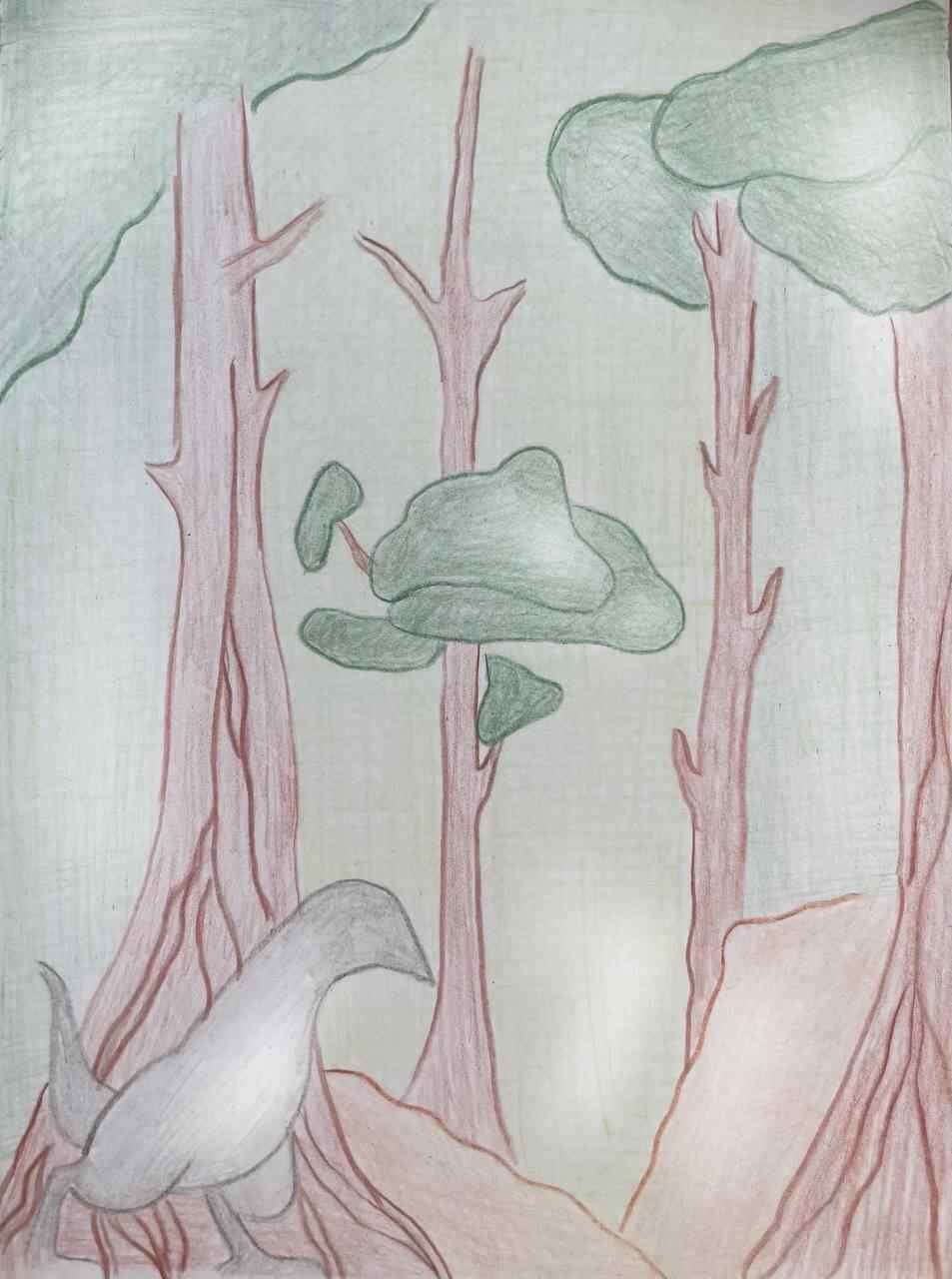 Она вышла наружу и оказалась на величественной поверхности бесконечных земель. Повсюду простирались деревья и кустарники, величиной с горы даже трава и листья была огромны в сравнении с растительностью на планете земля. Ландшафт напоминал по виду тот, что был на земле в мезозойские времена динозавров. И атмосфера была пригодной для дыхания. Немного осмотревшись Кира услышала странные громкие звуки, доносящие с разных сторон. Они были очень жуткие, ревущие и совсем близко. Взяв с собой нужные вещи из челнока, она пошла в сторону леса, который находился прямо перед местом её падения. Отойдя немного от челнока, Кира услышала звук приближающих шагов, такой громкий, что он содрогал землю под её ногами. Затем она увидела огромных размеров существо, по виду напоминающий динозавра и оно явно не отличалось дружелюбием. У него была большая пасть с кучей острых зубов, жаждущий поймать добычу и добычей сейчас был она. Он почувствовал её за километры и пришёл на охоту, Кира уже отошла от челнока и поэтому, возвращаться было нельзя. Дорога была одна, это лес в котором можно было укрыться от такого огромного хищника и когда бы он ушёл Кира смогла была вернуться на челнок. Но когда она