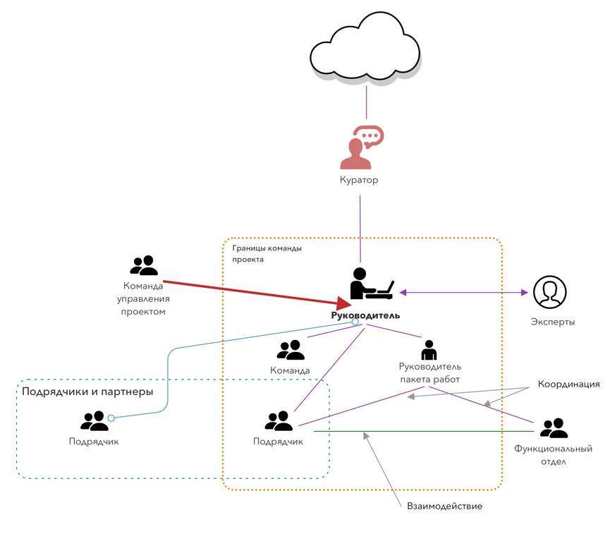 1. Подрядчики или партнёры в зависимости от уставных документов проекта могут оказаться внутри границ или вне их. От этого зависит скорость взаимодействия и количество необходимых документов для согласования выполнения ими работ.
