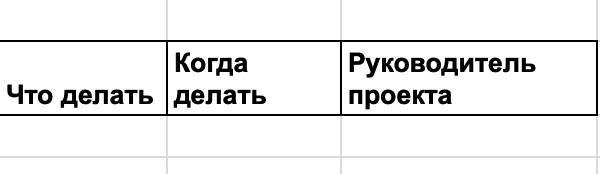Мы уже точно знаем, что в состав команды войдёте вы – как руководитель проекта. Остальные должности нам пока не известны, и привязываться к ним как раз не стоит. Поэтому остальные столбцы пока не надо заполнять должностями.