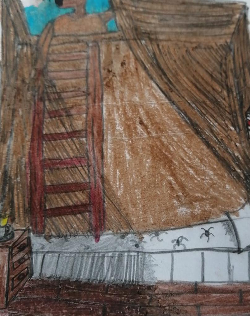 Взору представилась вполне жилая обстановка. Довольно просторное помещение, хоть и почти целиком заставленное шкафами с полками. В углу располагался камин, внутри которого лежали потухшие угли. Трубу для вытяжки от этого камина они и обнаружили снаружи. Справа лежало внушительное количество дров. Тут же, недалеко от камина стоял письменный стол с чернильницей и свечёй. А судя по наличию кровати, хозяин берлоги частенько оставался с ночевкой.