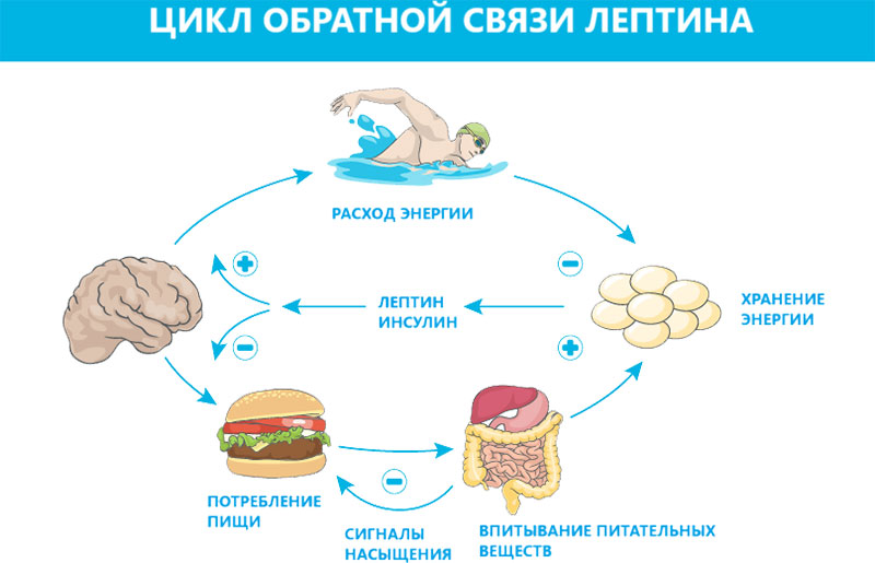 Если запасенная энергия (жир) и лептин остаются стабильными с течением времени, мы легче насыщаемся во время и между приемами пищи. Меньшие порции кажутся нормальными. И наш уровень метаболизма остается высоким.