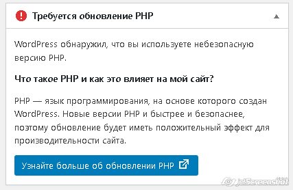 Обновление версий PHP следует делать в панели управления хостингом (сервером). Внимание: после обновления версии PHP некоторые функции сайта могут не работать.