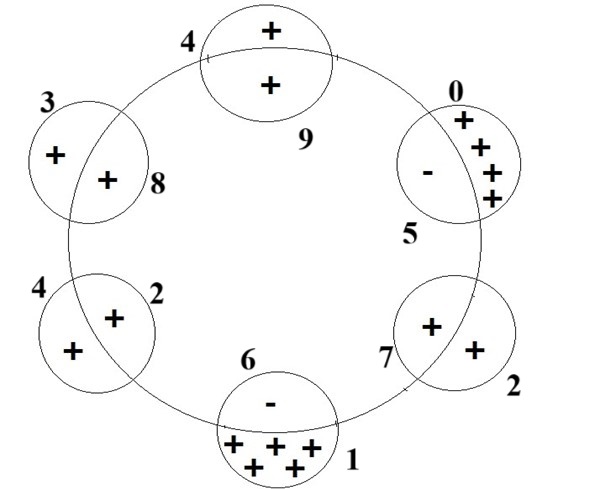 Количество плюсов карты «Шести первоэлементов» без плюсов элемента Пустота должно соответствовать количеству цифр рабочего ряда Данное соответствие – важный приём самопроверки, правильности составленной карты. В качестве дополнения: янская составляющая снаружи круга, иньская внутри.