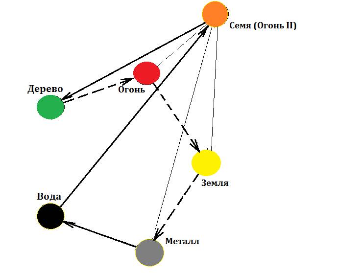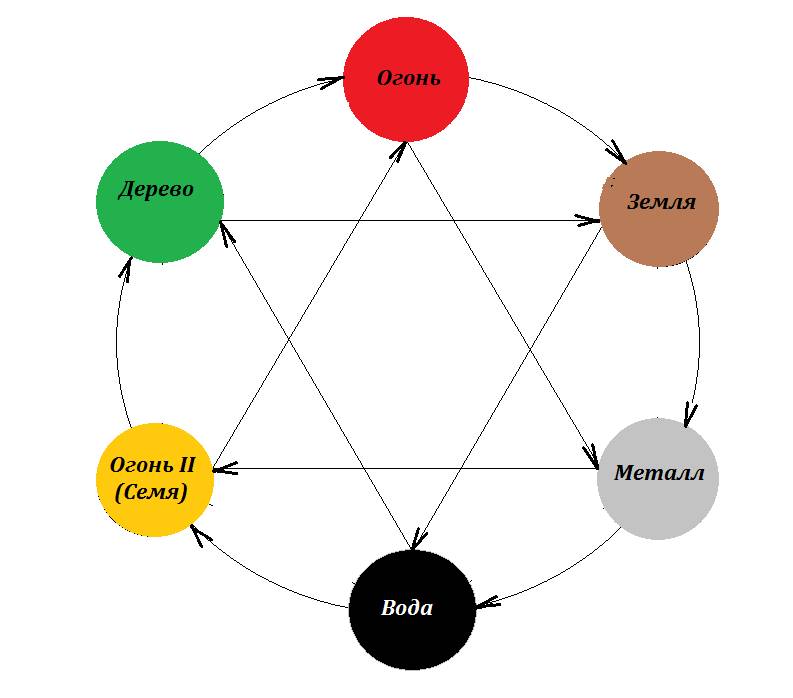Наглядное изображение китайской системы У-Син, на сегодняшний день, выглядит следующим образом: