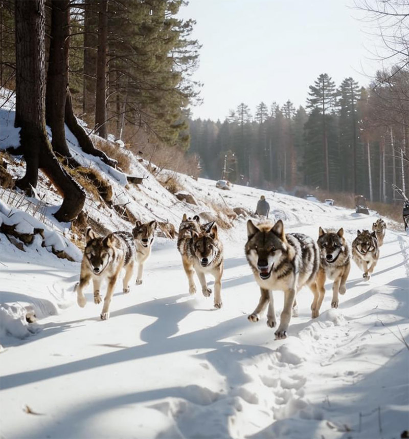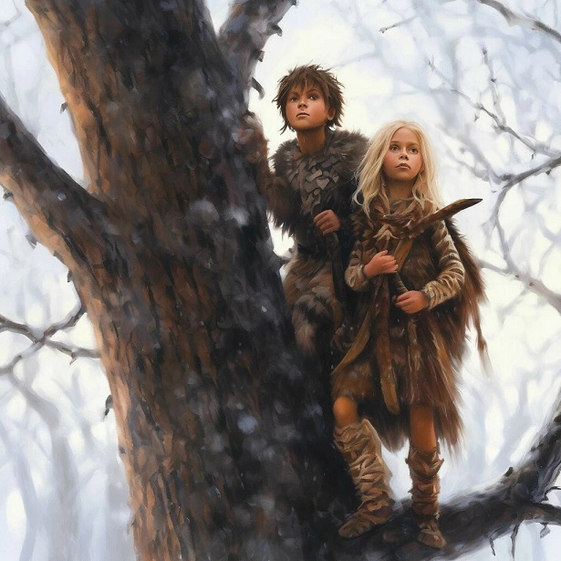 Айя и Хирви бежали по верху оврага, который разрезал глухой сосновый лес, засыпанный снегом. Они вовремя увидели стаю волков внизу этого достаточно глубокого овражка, и у них появился шанс спастись. Но и волки их заметили, пустившись в погоню. Случись это летом, у детей не было бы никакого шанса, но сейчас лощина была завалена таким толстым слоем снега, что волки не смогли сразу из неё выбраться наверх, и бежали по притоптанной зверьём тропинке на дне ложбины, видимо зная, что дальше есть более пологое место, где они выберутся из оврага, и непременно настигнут свою добычу. Ребята это тоже поняли, поэтому прекратили бессмысленный бег, выбрали сосну повыше и поразлапистей, и забрались на неё. Волки не заставили себя долго ждать, окружили дерево, один из молодых зверей даже попробовал запрыгнуть на сосну, но получил лишь недовольное рычание вожака, дескать – не майся дурью. Вожак был матёрый, он прекрасно понимал, что добычу они просто так не получат, и повёл стаю в другое место, оставив пару особей караулить добычу, пока она сама не свалится от холода или голодухи. Да уж, наловили мы с тобой куропаток, укоризненно обратился Хирви к своей подружке. Видите ли, духи ей рассказали, что они все в овраг попрятались, так, как только там и остался глубокий снег. Только эти самые духи видимо и волкам рассказали, что мы туда придём. Девочка только фыркнула в ответ… ей действительно нечем было возразить.