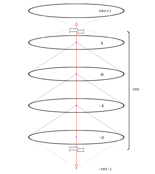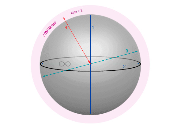 Где ∞+1 запредельное снаружи и является «Сознанием», а -∞-1 запредельное внутри, то есть «Глобальный аспект Я», реализованный с фундаментальной относительностью к <Своей> полной противоположности (в качестве метода и основания бытия) – очень важному «Реальному аспекту Глобального Я». Для понимания четырехмерности, этого вполне достаточно, однако, к этому придется вернуться, иначе столкнемся с естественным барьером рассудка, при исследовании «Коллективной Синхронной Реализации». Следует уяснить что мы рассматриваем общую структуру, но с позиции каждого существа она ничем не отличается;