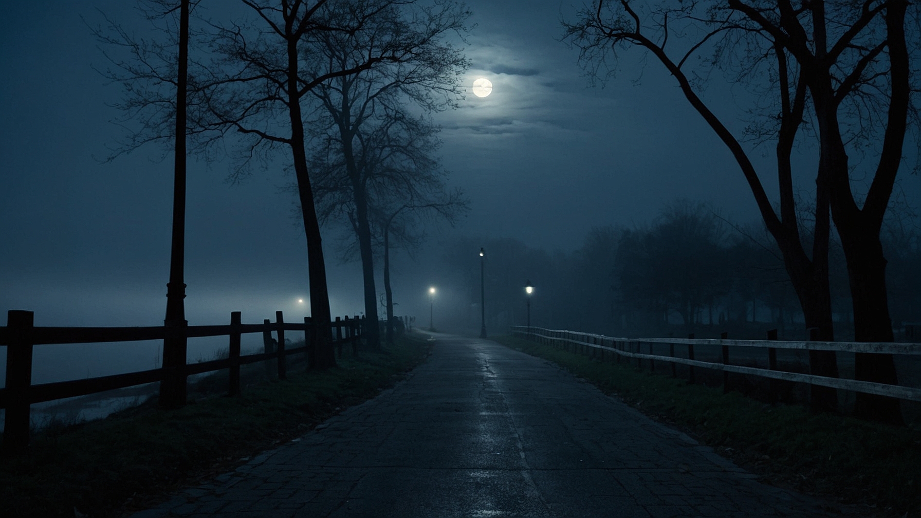 Сумерки медленно опускались на небольшой прибрежный городок, погружая его в едва ощутимую дымку. Набережная пустовала, но над водой витал неуловимый запах соли и сырости, едва уловимые звуки всплесков волн о каменные сваи. Фонари, выстроенные вдоль старинной мощёной дороги, бросали тёплый, тусклый свет, создавая длинные тени, которые танцевали на гладком полотне реки. Здесь редко можно было встретить людей после заката: многие словно ощущали, что это место не для живых.