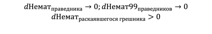 А дальше возникает впечатление, что рассказчик притчи уже владел математикой бесконечно малых величин, освоенной человечеством только в 17 веке. Она утверждает, что когда переменная стремится к нулю, то ее произведение на конечную величину тоже стремится к нулю. Поэтому прирост нематериальных благ девяноста девяти праведников dНемат99праведников также стремится к нулю.