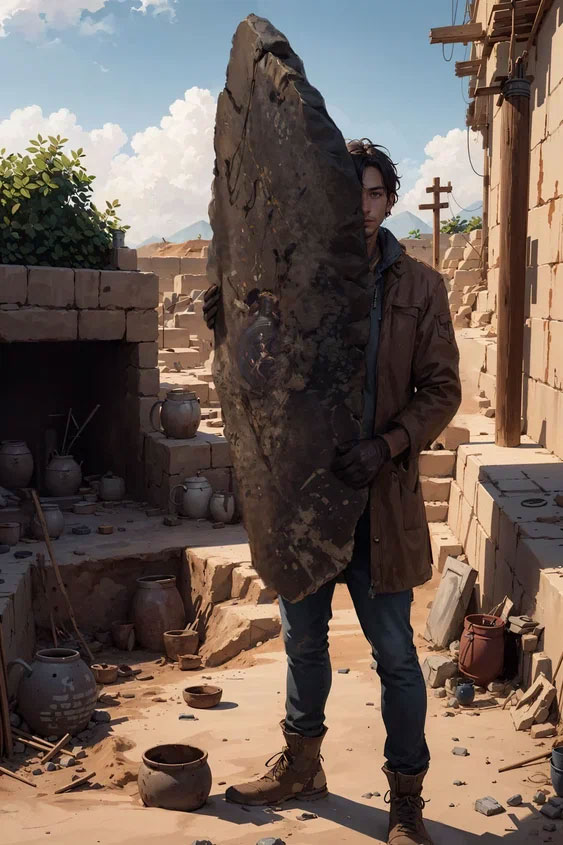 Один из двух кусков поймал ловкий парень-археолог, а второй -проворная девушка-археолог. У каждого из них в руках оказались довольно крепкие куски землицы и из каждого торчал кончик ослепляющего и блистающего необычным светом кувшинчика. Не успели они посмотреть друг на друга, как под ногами у симпатичных археологов с кувшинчиками в руках появилось много-много людей: кто с кисточками, кто с лопатками. Они очищали все вокруг, не замечая никого и ничего кругом, в надежде найти что-то подобное.