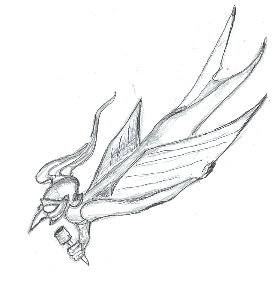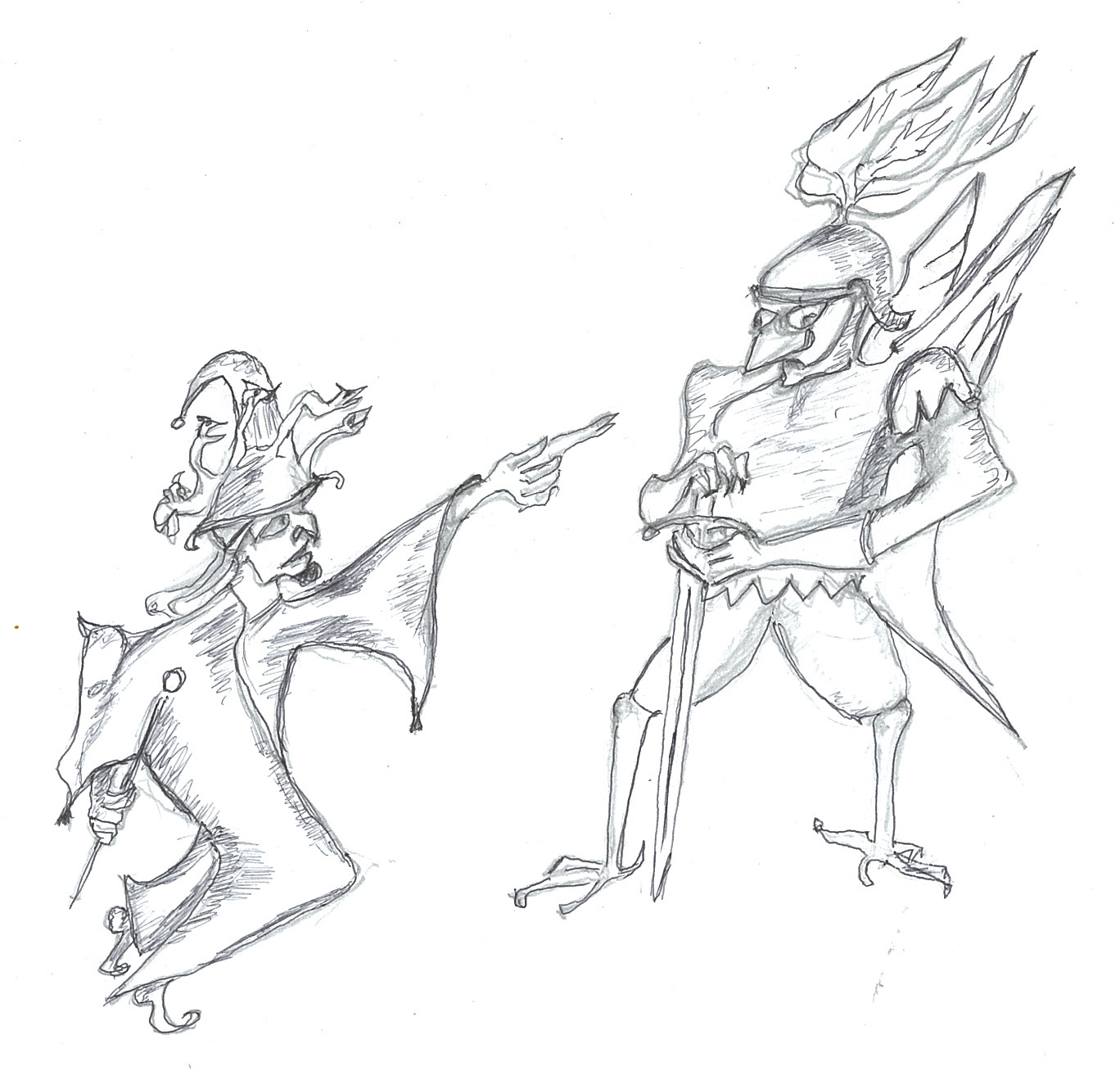 Мистер Редли вновь увидел мутный силуэт существа-птицы, стоящего к нему спиной. Трехметровый рост, развитые плечи, темно-синие вздернутые крылья и торчащий над головой хохолок, мощные лапы, обтянутые кольчугой с рыцарскими шпорами. Существо неожиданно повернулось и взглянуло в упор на мистера Редли сквозь выпуклые стекла шлема. Существо левой рукой подняло забрало в виде клюва, и мистер Редли увидел лицо своего боевого товарища, пропавшего из бюро год назад. Он был очень бледен и смотрел вдаль мимо мистера Редли. Выпуклую грудь монстра покрывала кольчуга, на поясе в ножнах висели меч и рог в золотой оправе. В правой руке он сжимал длинноствольный пистолет.
