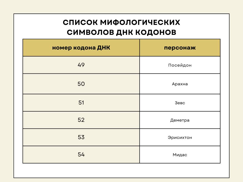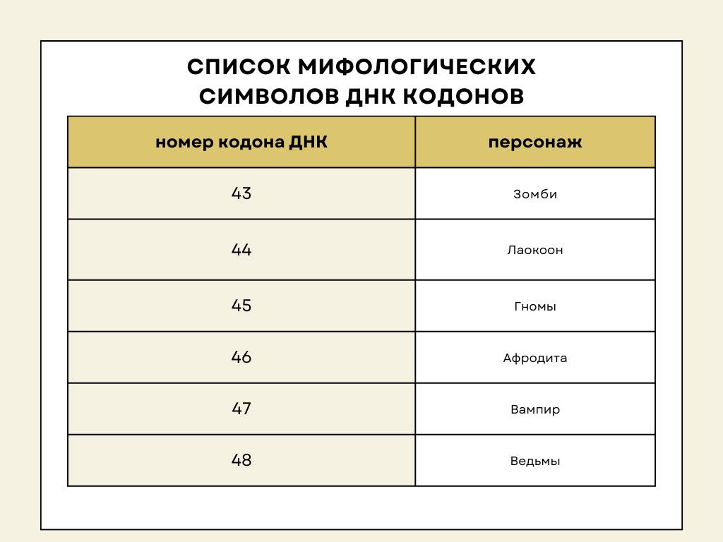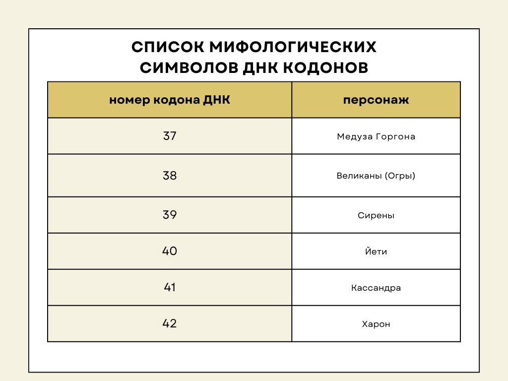 Таблица мифологических символов 64 ворот по Дизайну Человека