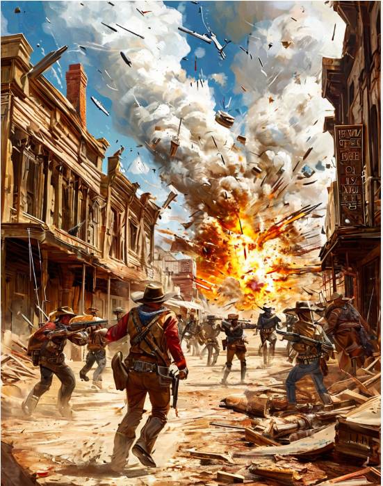 Но Джон Брендон был не так прост. Не зря он подорвал половину города. Потому вестмены заложили на путях пороха неисчислимое количество, и когда поезд приближался к ним, ковбои не стали медлить и взорвали всё, что только можно.