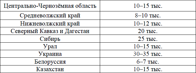 3. Первоочередное проведение кампаний по выселению кулаков и их семейств в следующих районах СССР (с установлением количества семей, подлежащих депортации):