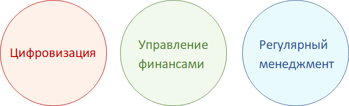 Финансовый директор должен обладать всеми тремя компетенциями. Да, в первую очередь он должен уметь управлять финансами, но, кроме этого, владеть технологиями менеджмента и лидерства, обладать навыками автоматизации. И эта книга, в каждой своей главе, будет опираться на три составляющие: управление финансами, цифровизация и регулярный менеджмент.