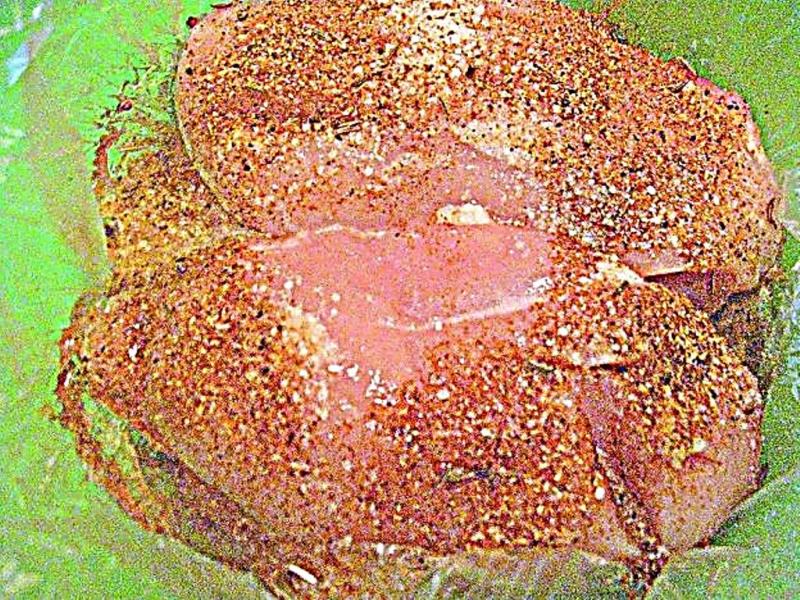 Затем завернуть всё в плёнку, придать форму и уплотнить, обмотав, как следует, несколькими слоями плёнки.