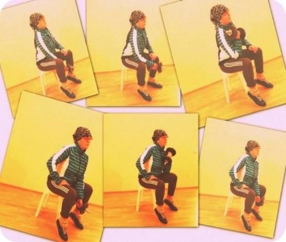 Исходное положение – сидя на надёжной опоре, снаряд в одной руке, рука выпрямлена между ног, локоть упирается в бедро (здесь каждый спортсмен приспосабливается по-своему).