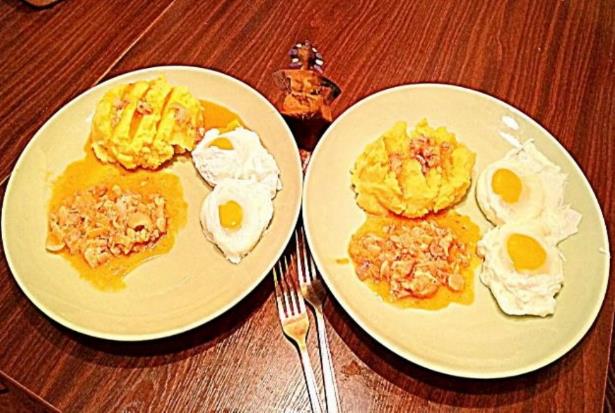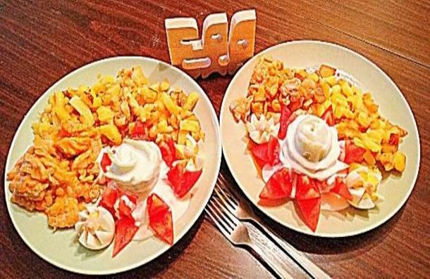 Жареная картошка с яйцами – ГИ – 95, 150 ккал/100 г, 150 г = 225 ккал,