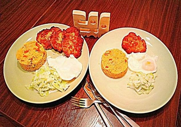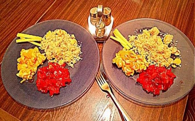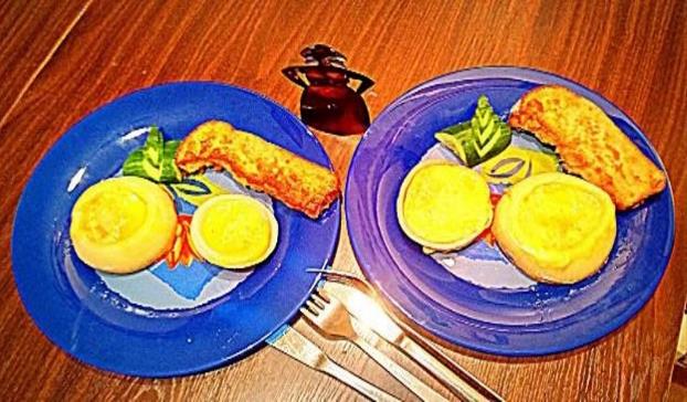 Омлет из двух куриных яиц – ГИ –50, 155 ккал/100 г, 80 г = 124 ккал,
