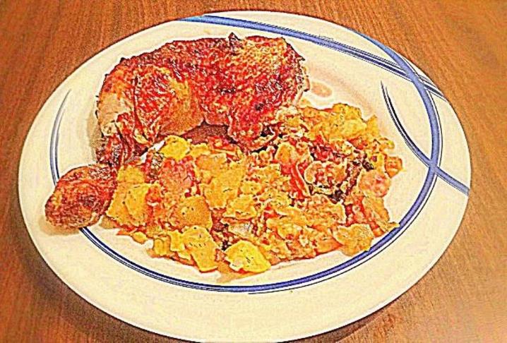 Этим вечером перед сном – одна куриная котлета – примерно 150 грамм, одно куриное яйцо, 4 куска белого хлеба, один стакан подсоленного, разбавленного водой, кефира.