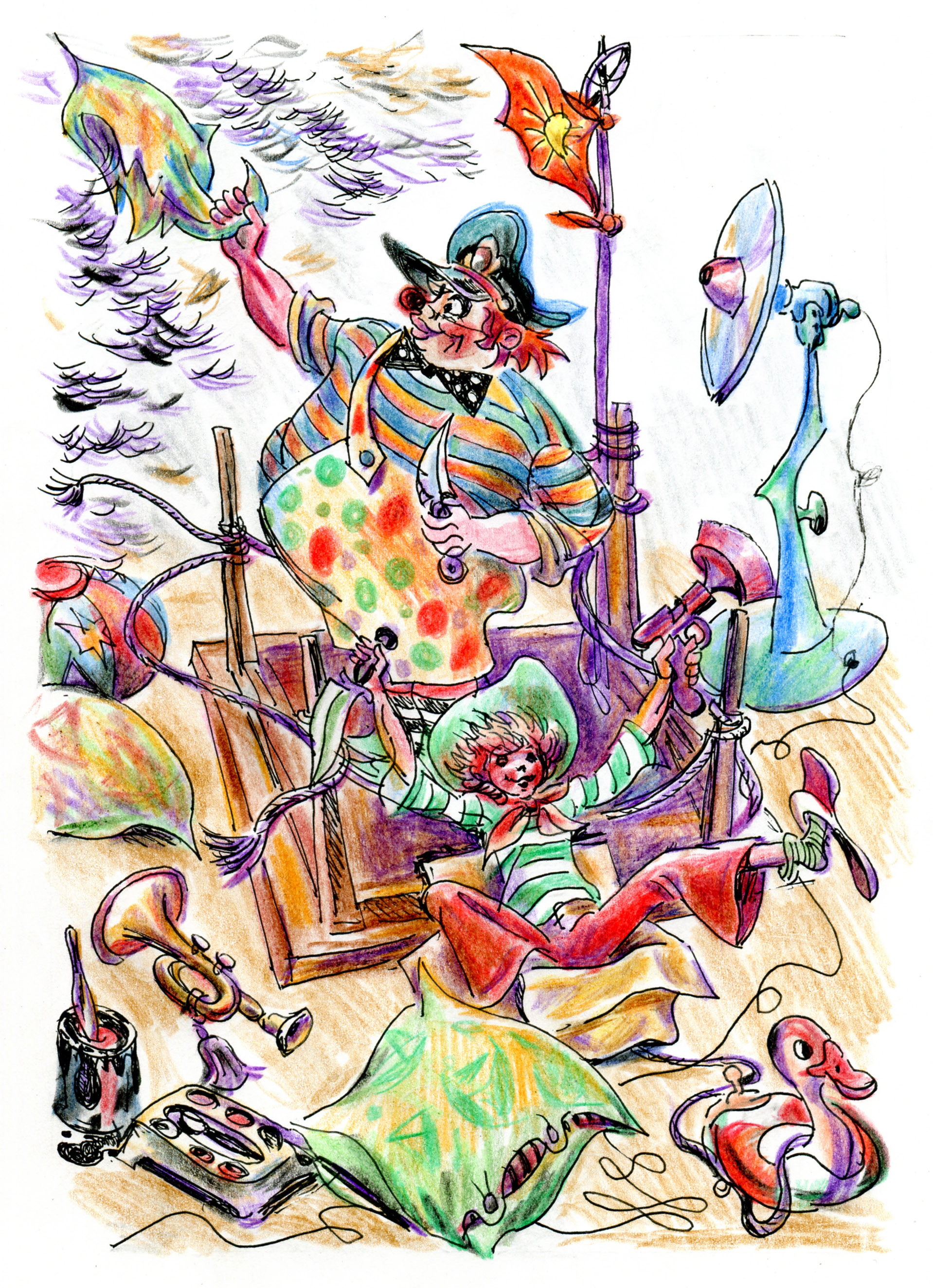 Я очень старался не смеяться, чтобы с первых минут знакомства не обидеть Клоуна. Нет, я верил, что только так рисуют корабли, а веселиться хотел от радости, но вдруг он не поймёт.