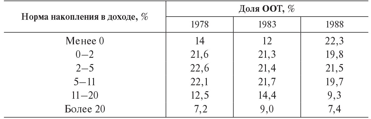 Не менее важный фактор – неравномерное распределение денежной массы между производством, нехозяйственными организациями и населением. Существующая система распределения дохода вызывает перелив значительных денежных средств в сбережения населения с очень низкой скоростью обращения. Система принудительного финансирования СЗС также способствует иммобилизации доходов ОООТ, поскольку здесь скорость обращения финансовых ресурсов отстает от скорости обращения денег в хозяйстве.