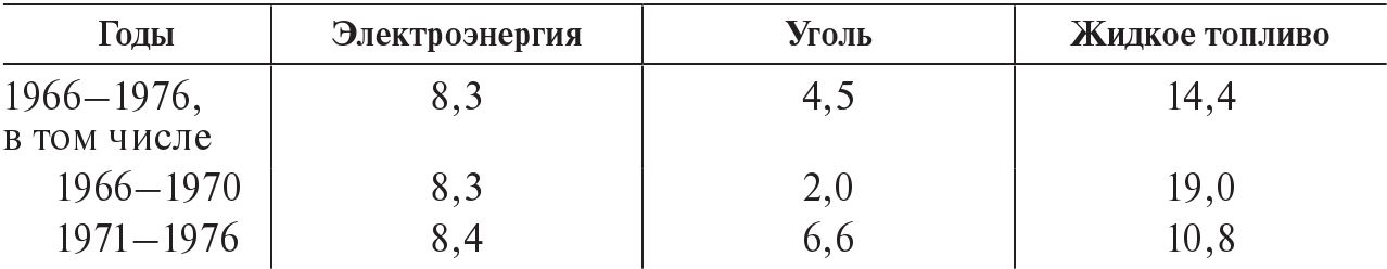 Потребление электроэнергии и топлива в промышленности, темпы роста в 1966–1976 гг., %
