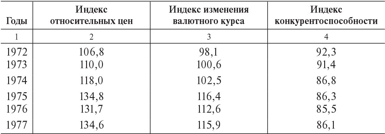 Индексы относительных цен, изменения валютного курса и конкурентоспособности (1971 г. = 100)