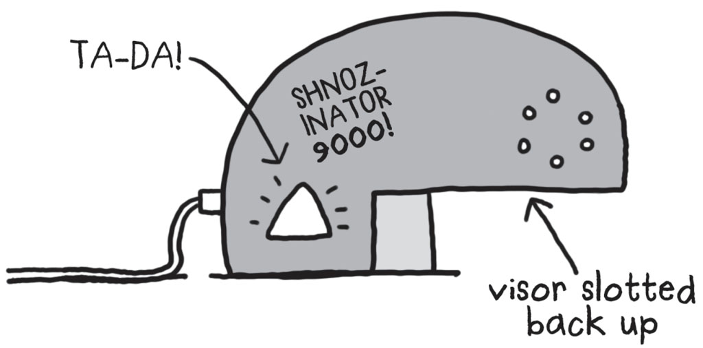 You’re probably wondering what a SHNOZINATOR 9000 is by now. It’s this keel new gaming helmet that makes you feel like you’ve been transported to Shnozville.