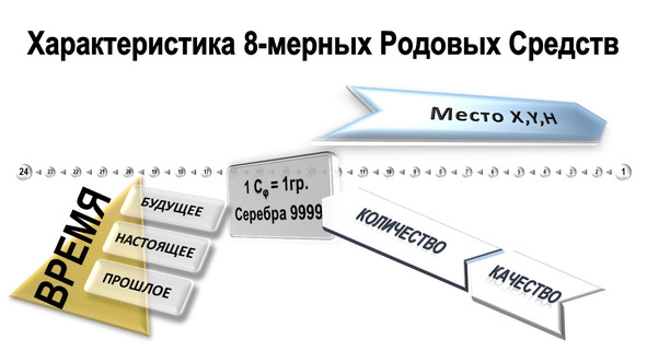 Считать одну единицу Родовых 8-мерных Средств равной стоимости одного грамма химически чистого серебра пробы 9999 в конкретный момент времени и в конкретном месте.