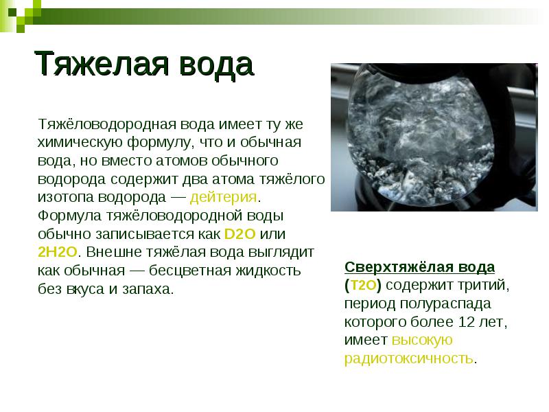 Вот учёные всё бьются над проблемой возникновения воды на Земле. И в 20-ом веке была открыта так называемая «тяжёлая вода» (дейтерий два «о»), которая послужила в будущем созданию водородной бомбы.