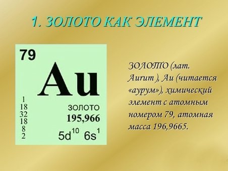 Буквально один, всеми любимый элемент рассмотрим – Аurum (золото).