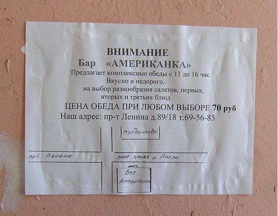 Интересно наблюдать за народными названиями, которые сейчас фиксируются на письме и используются в рекламе. Маркерами пространств – как и в старину – становятся кафе, магазины, торговые центры, и чем они веселее – тем вероятнее, что пойдут в народ. Это знают хозяева, взявшие для своих бизнесов такие яркие имена, как петербургская «Жопа», «Едим руками», московские «Пьяный дятел» и «Дорогая, я перезвоню». По ним мы с удовольствием ориентируемся, а если кабак проживет лет десять – возможно, дело дойдет и до официального топонима.