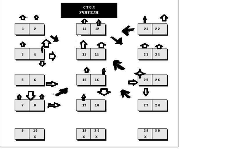 Рис.1 Стрелками указана часть распределения внимания в классе.