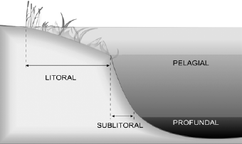 Зона литораль (Litoral) – это участок дна, покрытый водной растительностью, глубина распространения которой зависит от освещенности (прозрачности) воды. Это наиболее благоприятная зона для обитания как водных растений, так и различных животных организмов, в том числе и рыб. Именно здесь они находят корм.
