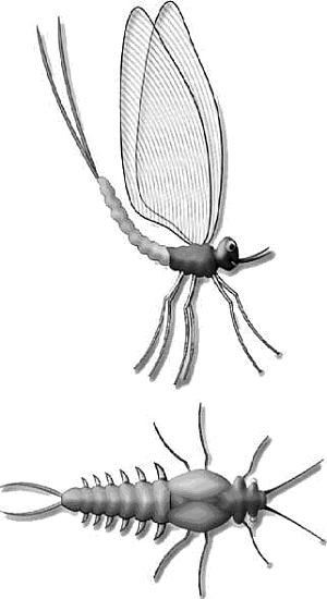 Поденки. Это следующая группа насекомых, составляющая важную часть корма рыб.