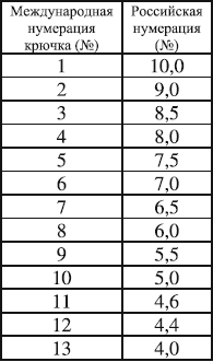 Таблица 1. Соответствие международной и российской нумерации крючков