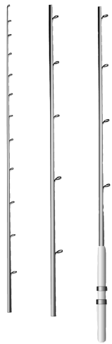 Необходимо отметить, что на современном рынке появились и телескопические удилища, предназначенные для такой ловли. На них также установлены облегченные кольца на высокой ножке. Понятно, что по качественным характеристикам они все-таки уступают составным удочкам.