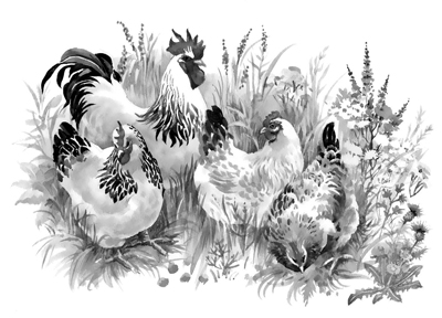 Весь день куры вместе с гусями и утками паслись на нашем заливном лугу. Здесь и червей много, и всякой-всякой ползучей и порхающей живности.
