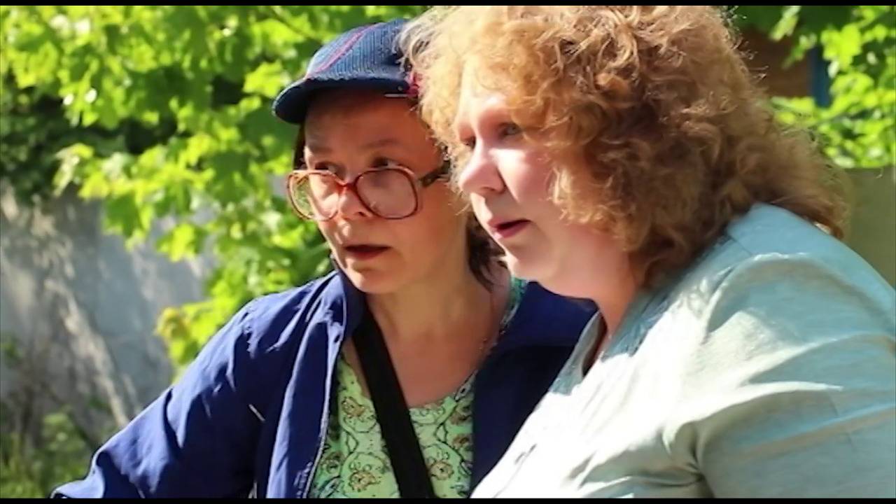 Харитонов закрывает дверь, ключ прячет в карман и выходит на улицу. Проходит мимо Петровны и Феофановой.