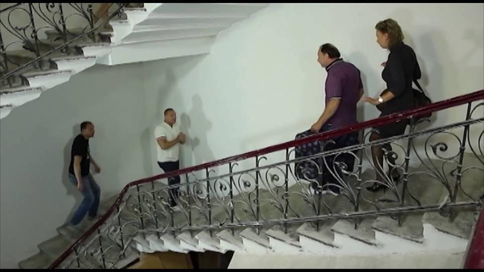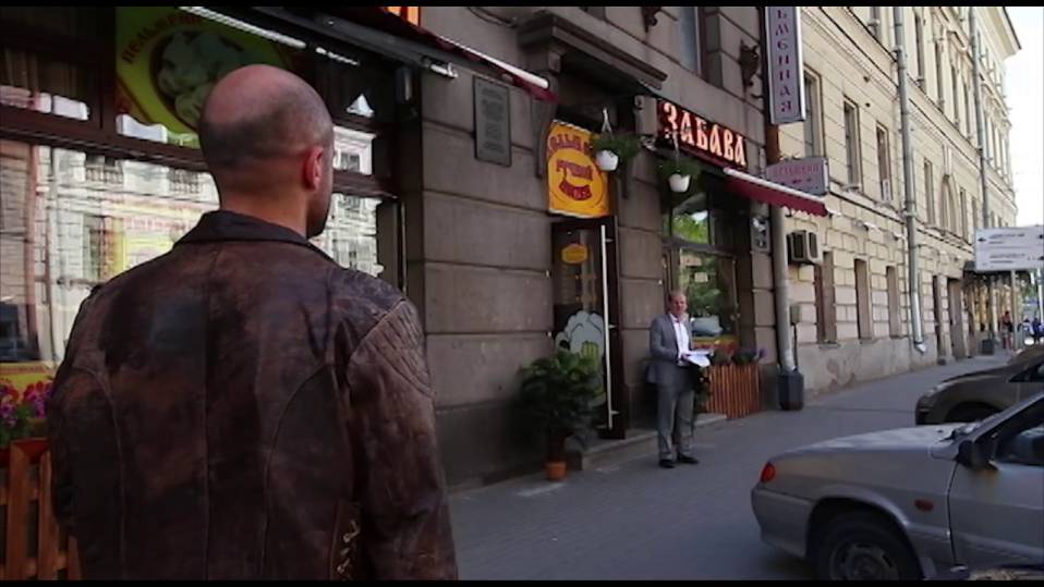 Гоша выволакивает Шепетиевского на улицу и запихивает в «БМВ», припаркованные у бордюра.