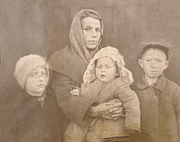 Христиния Захаровна (первая слева в нижнем ряду) с семьей